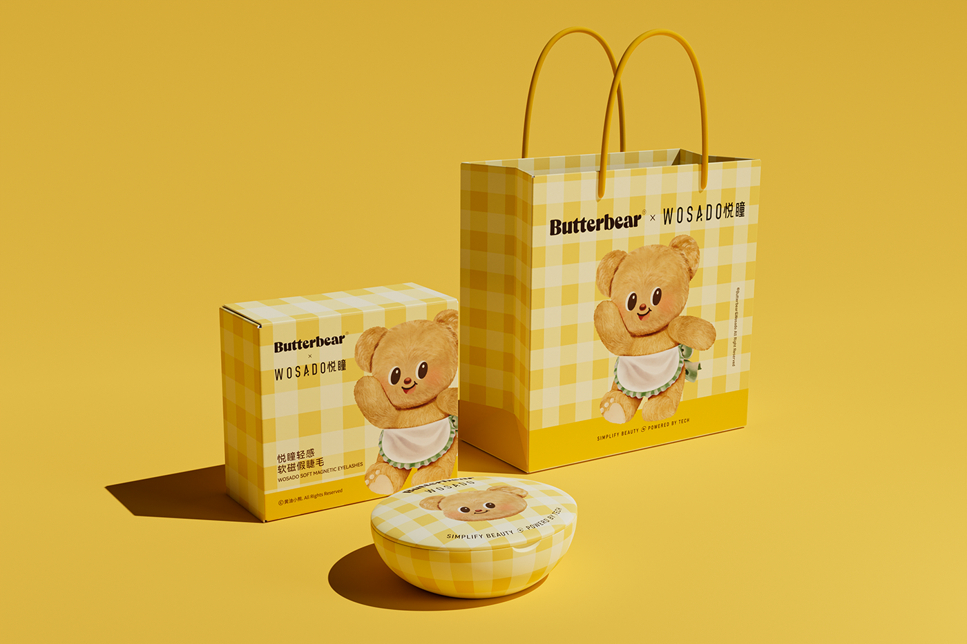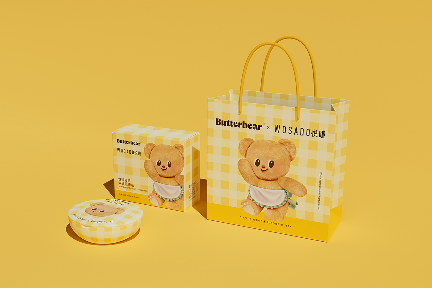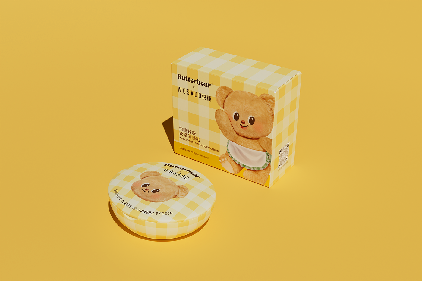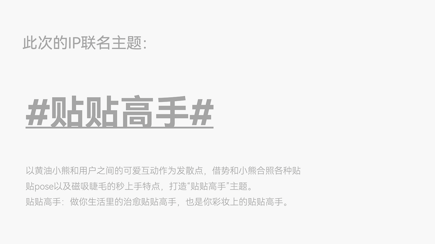 以黄油小熊 “治愈贴贴、亲密陪伴” 的核心人设为锚点,深度绑定悦瞳磁吸假睫毛 “强贴合、零负担、高自然” 的产品核心卖点,打造 “IP 情感 + 产品功能” 双向赋能的联名体系。视觉设计上,保留黄油小熊软萌圆胖的经典形象,创新加入 “双手比心贴眼睫”“怀抱睫毛道具贴贴” 的专属动作,用拟人化场景直观传递产品 “3 秒贴合、全天不脱落” 的优势;色彩延续小熊标志性的奶黄 + 浅棕配色,搭配悦瞳品牌专属的清透白,营造甜而不腻的视觉氛围。